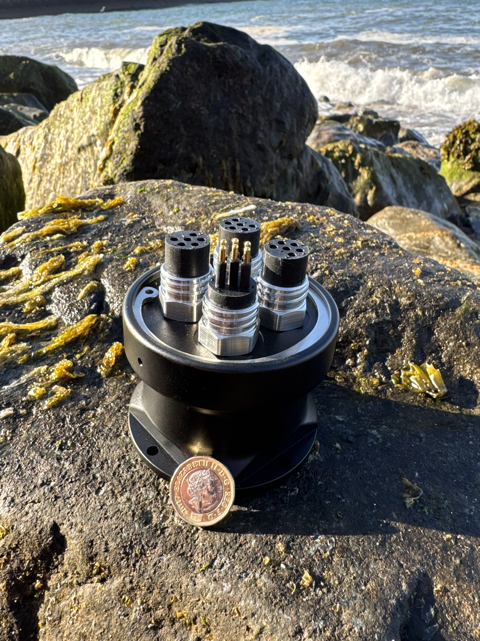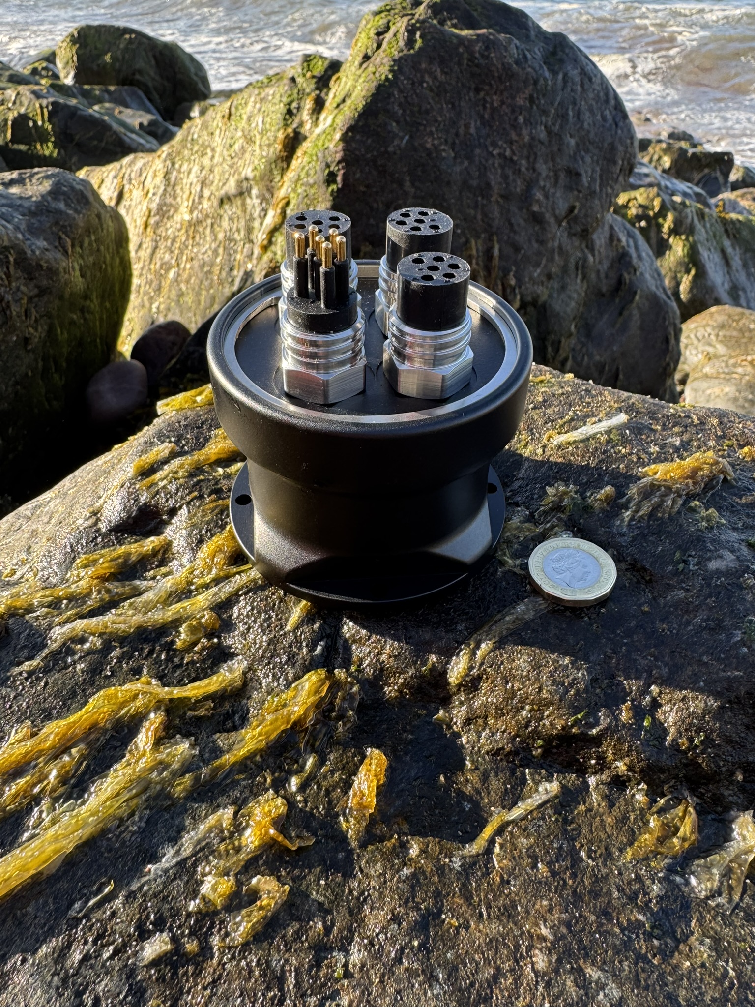 The SeaTRiO TRiONode -S Underwater Ethernet Switch is a compact and reliable solution designed to expand Ethernet connectivity on ROVs and underwater installations. Featuring one input and three outputs, this switch allows users to seamlessly extend their network capabilities, enabling multiple devices to connect and communicate efficiently. With 10/100 Mbps capability, it ensures stable and high-speed data transmission for various underwater applications. Built for versatility, the unit is available in different depth ratings to accommodate a wide range of operational needs. Its rugged, compact design ensures easy integration into existing systems while maintaining optimal performance in demanding marine environments.